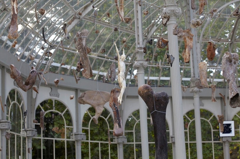 Estos mismos hallazgos son los que conforman la obra de Vō, que primero quedó seducido por las características del Palacio de Cristal; por su historia; por su estructura, tratándolo como una gran vitrina que encapsula la nostalgia de un museo de arqueología y paleontología decimonónico; y por las condiciones no museológicas de este espacio. Para más tarde elegir materiales que puedan explotar esa confrontación, tales como imágenes religiosas de los siglos XVII y XVIII (el Cristo de marfil y la estatua romana ensamblada a una talla gótica francesa de una Virgen con el Niño) o elementos de hace millones de años como los 600 fragmentos de huesos de mamut que el artista ha encontrado en Holanda.