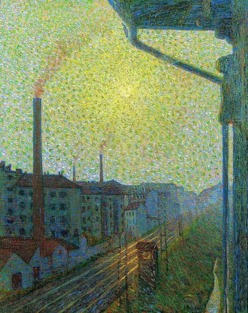 Poco conocido en nuestro país, el Divisionismo, aunque autónomo, tiene su origen en el Puntillismo, con el cual el ojo parece captar mejor las pinceladas fragmentadas en puntos, siempre en colores básicos. Bebiendo de esa idea el Divisionismo busca, por encima de todo, la división de los tonos como un medio y no como un fin. Una investigación de luz y color con un significado muy social, pues la temática de muchas de las obras es precisamente un reflejo de las condiciones de vida de las clases más desfavorecidas de esta Italia del siglo XIX. Pintores como Giovanni Segantini o Giuseppe Pelliza da Volpedo representan fielmente los lados más crudos y humanos de su país, las estepas más despobladas y los personajes más desgarradores -desde el ahogado en el mar hasta los obreros en la escuela- siempre acompañados de un ambiente onírico. Simbolismo y Realismo juegan de la mano de manera que no podemos distinguir uno de otro. Principalmente nos impacta la belleza de cada una de las obras, en las que el color prima como elemento de mayor importancia de las mismas.