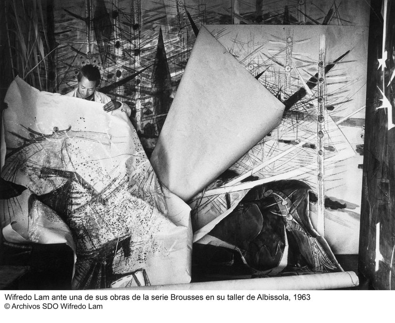 Nacido en Cuba, quizá por esa mezcla racial tan potente que se ve claramente reflejada en sus obras, Lam tomó conciencia desde muy joven de la cuestión racial y de sus implicaciones sociales y políticas en su país de origen, Europa y Estados Unidos. La exposición justamente ha decidido realizar un recorrido por sus múltiples viajes así como por todos los países en los que vivió y, de esta manera, pueden observarse de forma mucho más clara y directa sus implicaciones y las figuras de las que bebió durante su vida. Picasso y el cubismo, el surrealismo estadounidense, la pintura tribal, todo ello se mezcla en su obra hasta dar con una técnica pictórica diversa y simbolista, integradora a partes iguales del modernismo occidental y los símbolos africanos y caribeños.