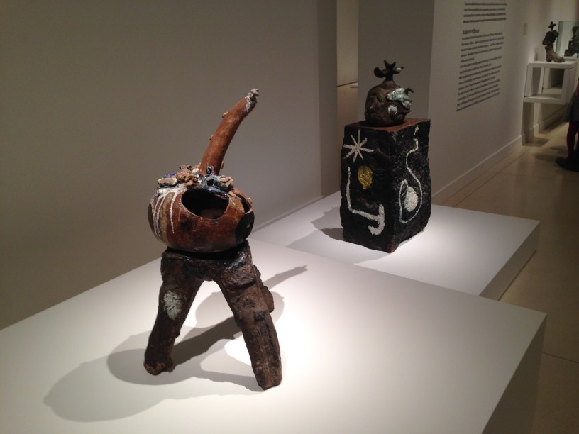 Nos encontramos con esculturas de temas y figuras recurrentes: la mujer, la naturaleza, cabezas, pájaros y formas fálicas, que no hacen sino poner en manifiesto una búsqueda de lo primigenio a través del arte, un primitivismo íntimamente relacionado con lo profundo de la dimensión sexual, explícito en su utilización de calabazas en algunas de sus obras, símbolo de la fertilidad y nexo maternal. Presenciamos aquí una propuesta sobre el hecho artístico como encuentro arqueológico. Lo que comienza siendo casi un experimento con objetos cuya significación intrahistórica suscita la curiosidad de su hacedor, sus infinitas posibilidades terminan derivando hacia la monumentalidad en bronce que caracterizará sus últimas andaduras escultóricas. En su anhelo de un contacto con la instancia primera del género humano, Miró se inspirará en las pinturas rupestres para pintar encima de sus propias esculturas, insuflándolas de vida, en una suerte de animismo que reclama la cotidianidad como centro de la vida y la importancia del medio en la experiencia artística (en este contexto, Miró será para el arte lo que Marshall McLuhan para la lingüística).