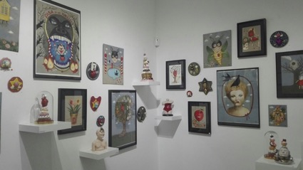 Nos acercamos a la calle Pez, en el trayecto final de 2017, en una de las muchas y pintorescas calles del barrio de Malasaña. Allí encontramos una pequeña galería donde se exponen obras muy características propias de un movimiento artístico denominado Surrealismo pop o Lowbrow. Esta corriente artística nace en Los Angeles, California, a finales de los años 70, y está basada en la cultura underground de la propia ciudad. Se caracteriza por su influencia punk y rock, así como del arte callejero y popular, por hacer uso de la sátira y del sarcasmo.