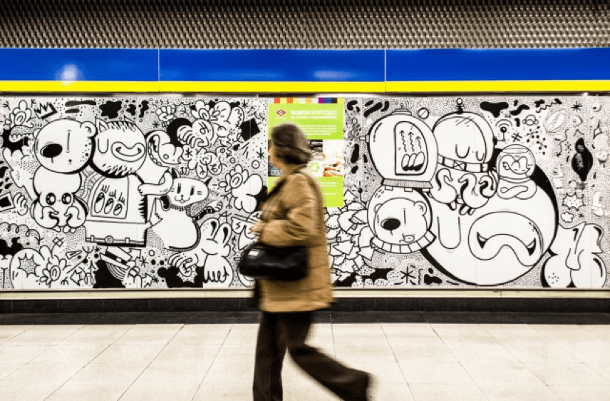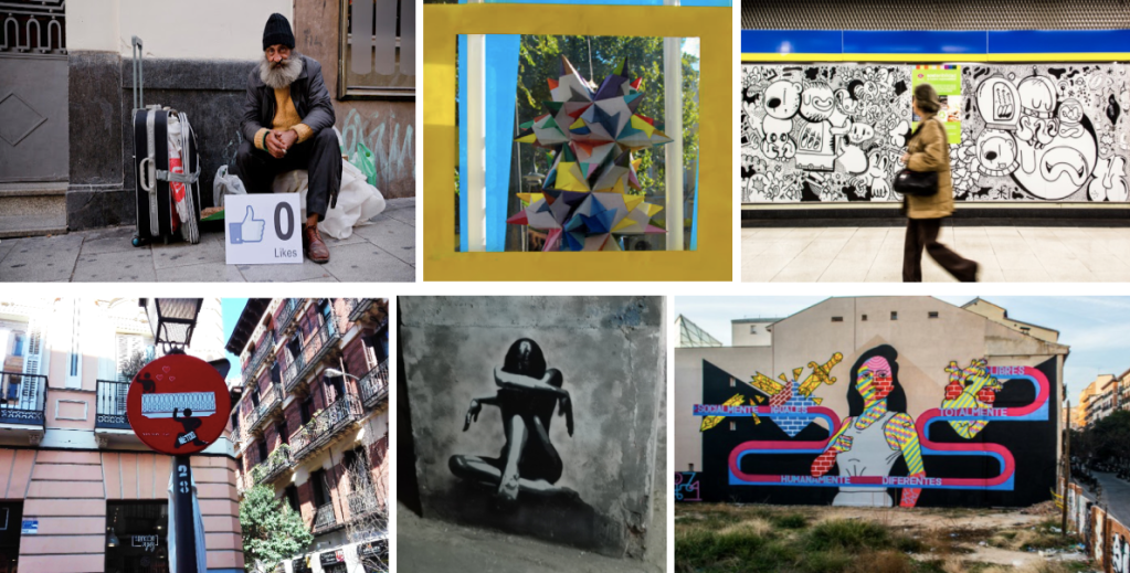 Hemos escogido para vosotros/as seis figuras destacadas de este fenómeno artístico en Madrid, como Spy, Nuria Mora, Yipi Yipi Yeah, la Banda del Rotu, el Rey de la Ruina y Tejelaraña para ofreceros una rápida visión de la originalidad, creatividad y diversidad del excelente arte urbano que ha estado presente en las calles madrileñas en la última década.
