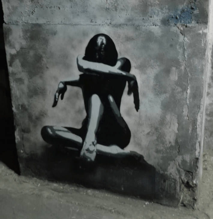 Tabacalera (C/Embajadores, 51) es el espacio de la antigua fábrica de tabacos que fue cedido por el Ministerio de Cultura a los vecinos para convertirse en un espacio autogestionado. En sus túneles se ha desarrollado una de las experiencias de arte urbano más interesantes de la ciudad. La planta subterránea es utilizada por distintos colectivos para llevar a cabo todo tipo de talleres y encuentros. Entre estos colectivos está el taller El Keller, que comenzó en 2010 como espacio dedicado al street art. Gracias a la presencia de este taller, los muros deteriorados de estos túneles se convirtieron en el soporte perfecto para que los artistas urbanos intervinieran en ellos de forma espontánea. En este lugar, el artista Por Favor realizó una impactante obra que se encuadra en su serie contra de la violencia de género. El uso solo del blanco y negro enfatiza la soledad de la mujer que esconde su cara. Y es que este madrileño ha mostrado su propósito de utilizar el arte urbano como herramienta para hacer denuncia de las injusticias sociales.