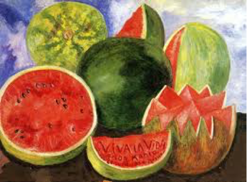 En verdad, la artista azteca representó una naturaleza muerta llena de sandías, elementos que en la cultura de su país están asociados a las ofrendas del Día de los muertos, fecha de gran importancia para la cultura mexicana.