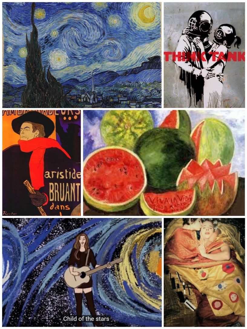 Muchas bandas han deseado ilustrar sus letras por medio de representaciones visuales que hagan alusión a pinturas famosas de la historia del arte.