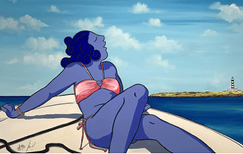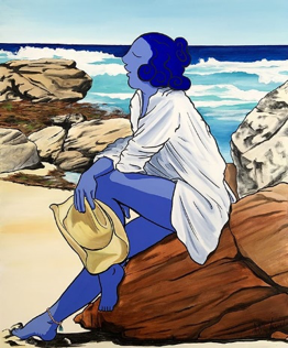 6. En casi todos tus cuadros aparecen como protagonistas mujeres azules. Cuéntanos un poco el proceso que lleva a Marc Jesús a pintar mujeres con estas cualidades.