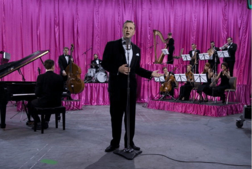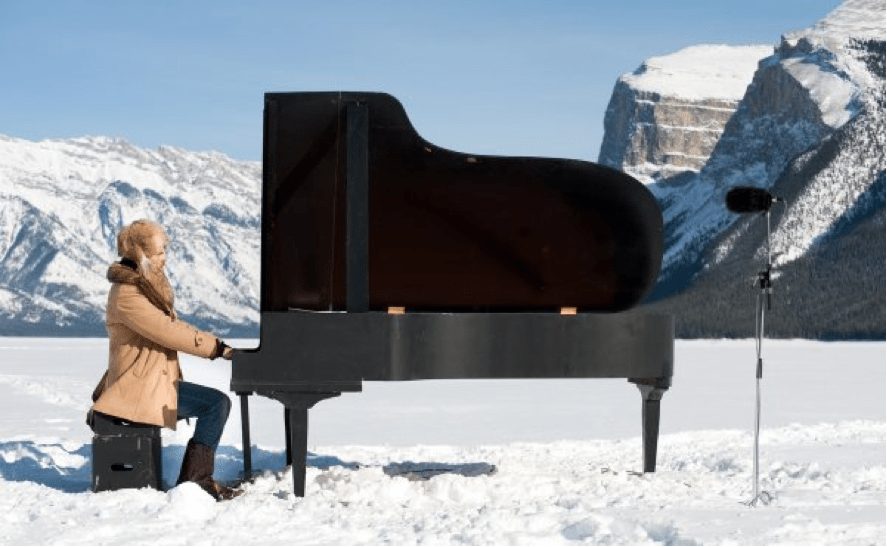Unavez dentro de la sala donde se proyecta The End, entramos en una amplia estancia oscura con cinco proyecciones, donde se muestra al propio autor tocando en las nevadas Montañas Rocosas de Canadá. Ante una imagen platónica apriorística que podamos tener acerca de un artista tocando en un paisaje voluptuoso como el mencionado, el espectador cuestiona la romantización del músico con la naturaleza al presenciar el hastío y agotamiento que sufre el propio Kjartansson frente a las condiciones climáticas al final del metraje.