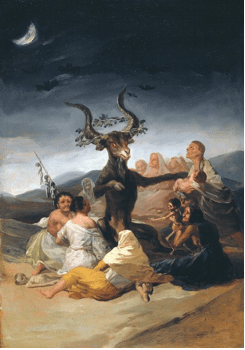 Francisco de Goya (1746-1828): Las Brujas y El Aquelarre (1797-98). Obras emblemáticas del museo. Ubicada en la Sala 13, este espacio está íntegramente dedicado a Goya y a sus contemporáneos. El conjunto de obras de Goya que se exhiben aquí resulta imprescindible para cualquiera que quiera entender la trayectoria que siguió el afamado pintor y cómo influyó en otros pintores coetáneos a él. De todas las obras que se exhiben, las más famosas por su factura, el uso de los colores -que hacen del cuadro un canto a la imaginación, la extravagancia, el misticismo, lo tenebroso y lo sombrío-, son Las Brujas y El Aquelarre.
