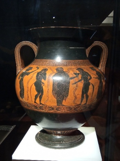 Las dos caras del mito (510 a.C): Es una cerámica griega que data del año 510 a.C. y que se encontró en el Ática. Es una de las cerámicas griegas más importantes del museo (quizás incluso la que más), pues es una de las pocas cerámicas descubiertas que mezcla los dos tipos de cerámica (fondo negro con figuras negras y por el otro lado fondo rojo con figuras rojas). En esta cerámica se representa a Dionisio y sus sátiros en las figuras negras.