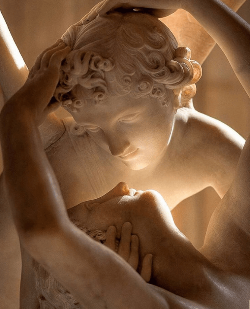 La escultura de Antonio Canova representa ese momento en el que Eros saca a Psique de su letargo y se encuentran de nuevo.