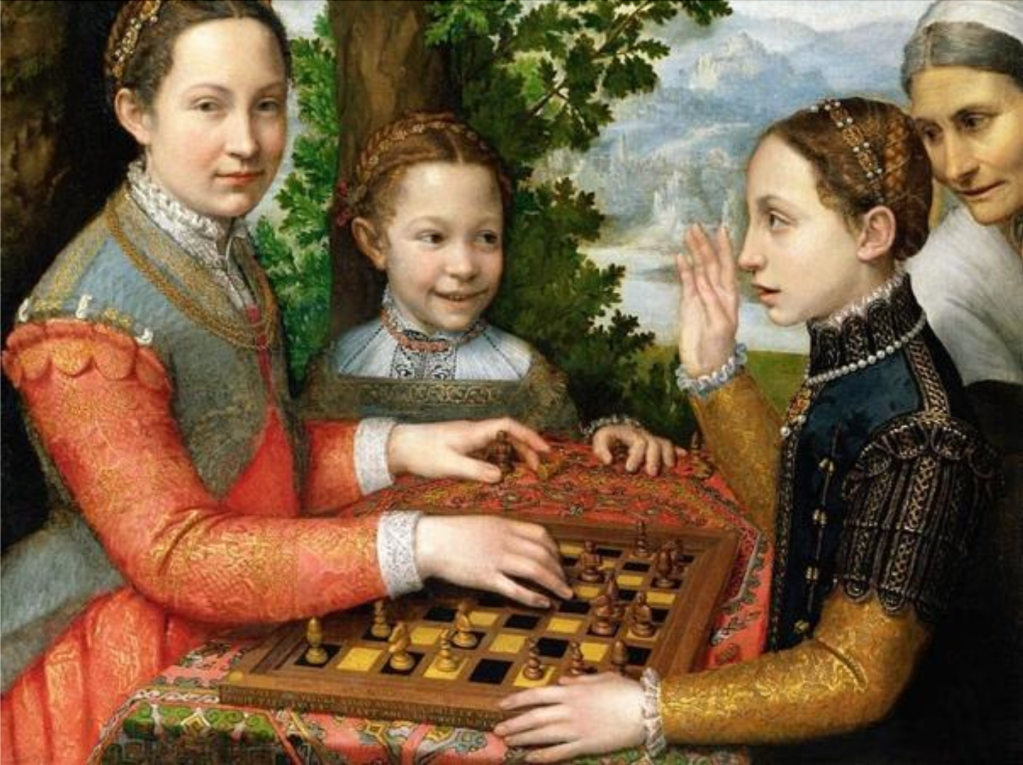 Partida de ajedrez, Sofonisba Anguissola, 1555. Autorretrato con caballete, Sofonisba Anguissola, 1565.