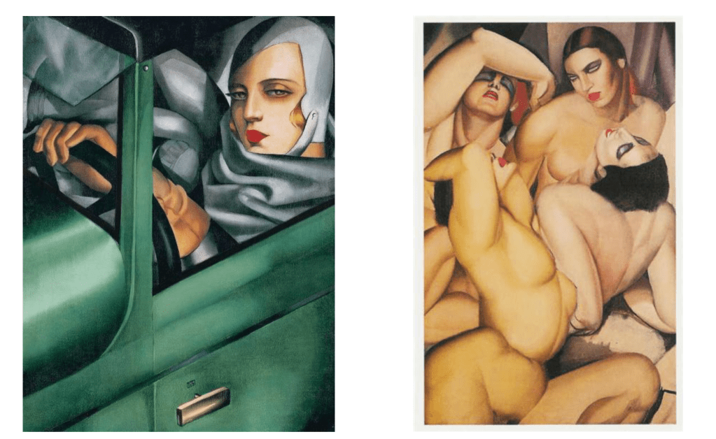 Autorretrato en un Bugatti verde, Tamara de Lempicka, 1929. Group of Four Nudes, Tamara de Lempicka, 1925.