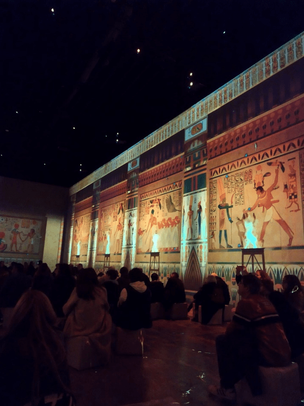 La muestra continúa con varias actividades interactivas. La primera de ellas es una sala inmersiva que recrea la vida de Tutankamón con imágenes en movimiento en todos los lugares de la sala. Sin duda, es una experiencia excepcional. El único problema es que existe la posibilidad de que algún visitante pueda sufrir mareos.