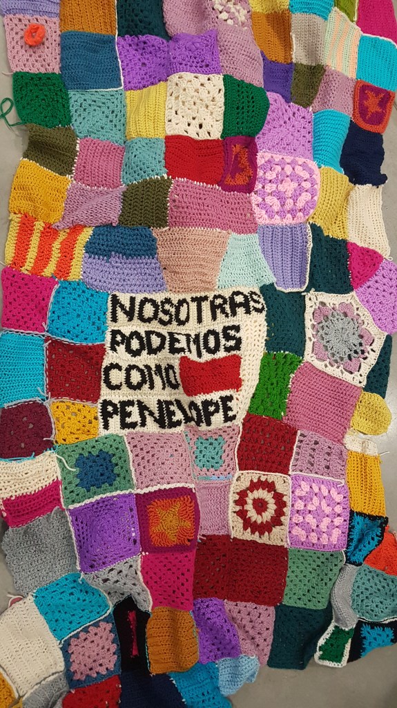 Asimismo, un grupo compuesto por más de treinta estudiantes ha realizado la acción artística Penélope, un trabajo colectivo, horizontal y conectado que tiene como objetivo oponer resistencia a la violencia de género desde la unión. La acción de tejer ha llevado a estos estudiantes a elaborar una manta en patchwork que recoge la aportación de cada uno de ellos y ellas.