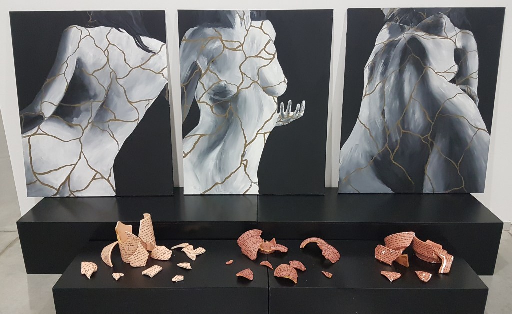 Además de estas piezas que aluden a la mitología, todas las obras que componen la muestra tratan diferentes actitudes machistas desde las perspectivas propias de cada artista: podemos ver piezas que expresan la idea de la herida, unas en un sentido más literal u otras desde un plano más poético.