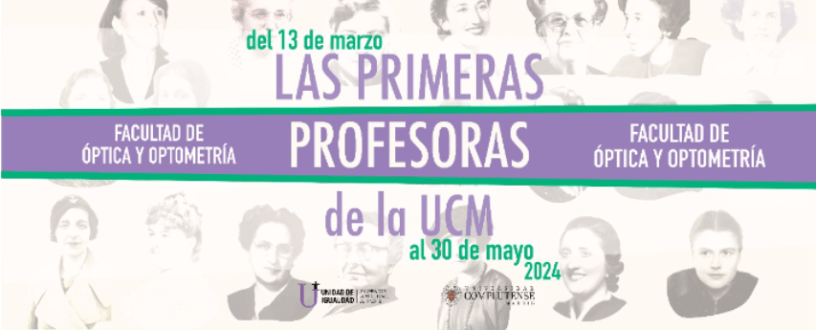 La exposición Las primeras profesoras de la UCM llega a la Facultad de Óptica y Optometría donde se podrá visitar del 13 de marzo al 30 de mayo de 2024. Se une a la itinerancia de esta muestra que ya ha recorrido otras facultades de la Universidad Complutense de Madrid. En total son 21 centros de esta universidad los que han acogido la exposición desde su inauguración el 8 de marzo de 2021: Filosofía y Filología (1 y 2), Ciencias Biológicas (3), Ciencias Geológicas (4), Ciencias de la Información (5), Veterinaria(6), Ciencias Químicas (7), Ciencias Físicas (8), Ciencias de la Documentación (9), Comercio y Turismo (10), Matemáticas (11), Farmacia (12), Medicina (13), Odontología (14), Enfermería, Podología y Fisioterapia (15), Psicología (16), Informática (17), Económicas y Empresariales (18), Bellas Artes (19), Educación(20), Óptica y Optometría (21).