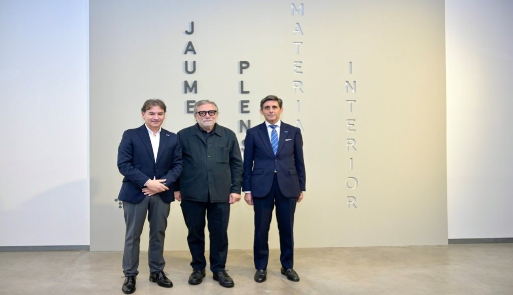 Espacio Fundación Telefónica. Jaume Plensa con José María Álvarez-Pallete director ejecutivo de Telefónica y con el director general de Fundación Telefónica, Luis Prendes, 2024.