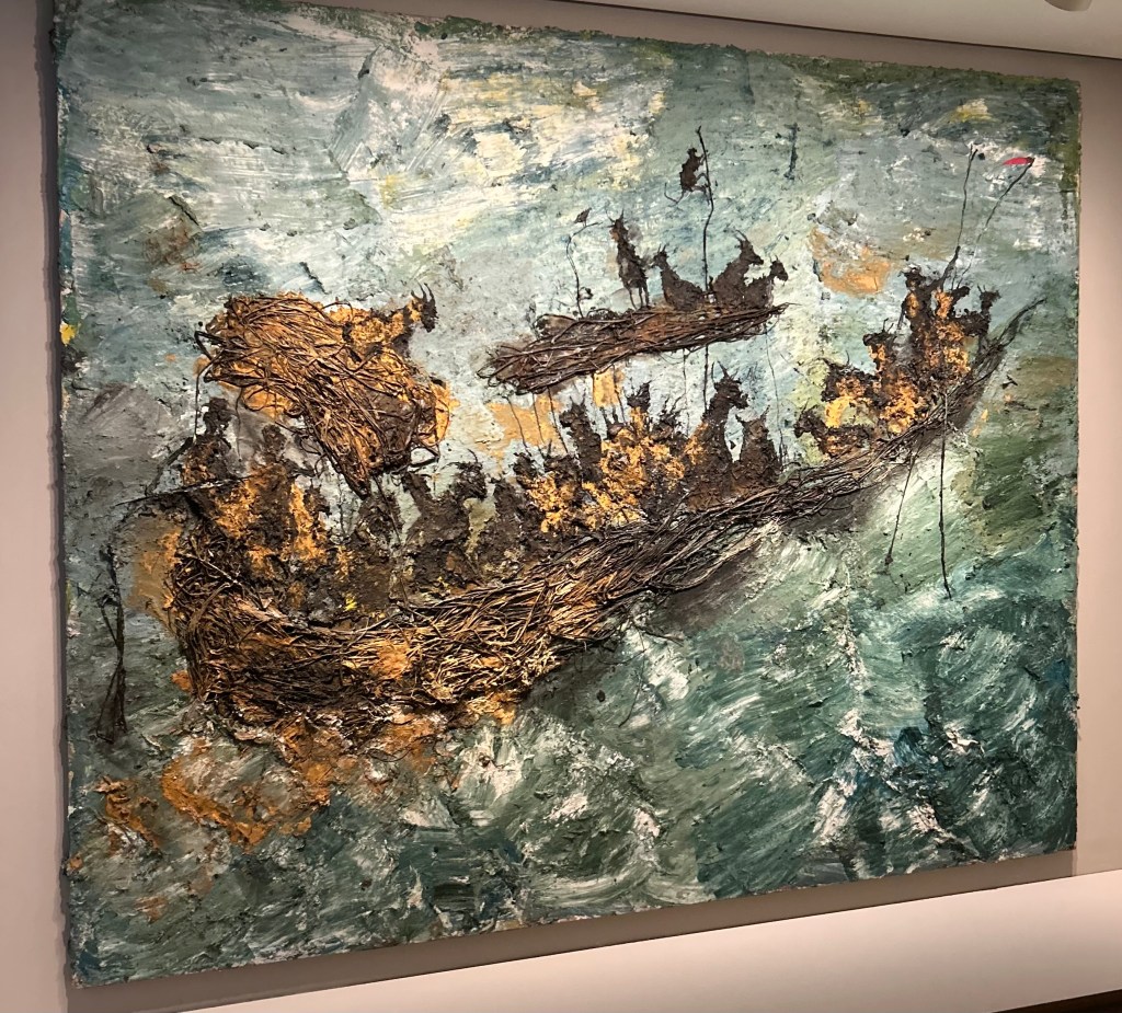 Siguiendo el recorrido, nos vamos aproximando al final del itinerario. En este punto nos encontramos con Miquel Barceló. Durante sus primeros trabajos con objetos naturales, dejó una gran influencia en su estilo y en su visión artística. Más adelante, comenzó a incluir objetos reales en sus naturalezas muertas, dándoles una textura y presencia muy marcadas. Finalmente, se vio influenciado por diversas culturas africanas, especialmente por la luz de Mali y las duras realidades de la vida cotidiana que se vivían en el continente.