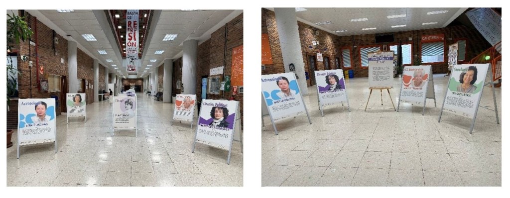 La exposición Las primeras profesoras de la UCM llega a la Facultad de Estudios de Ciencias Políticas y Sociología. Se une a la itinerancia de esta muestra que ya ha recorrido otras facultades de la Universidad Complutense de Madrid. En total son 23 centros de esta universidad los que han acogido la exposición desde su inauguración el 8 de marzo de 2021: Filosofía y Filología (1 y 2), Ciencias Biológicas (3), Ciencias Geológicas (4), Ciencias de la Información (5), Veterinaria(6), Ciencias Químicas (7), Ciencias Físicas (8), Ciencias de la Documentación (9), Comercio y Turismo (10), Matemáticas (11), Farmacia (12), Medicina (13), Odontología (14), Enfermería, Podología y Fisioterapia (15), Psicología (16), Informática (17), Económicas y Empresariales (18), Bellas Artes (19), Educación (20), Óptica y Optometría (21), Facultad de Estudios Estadísticos (22), Facultad de Trabajo Social (23).