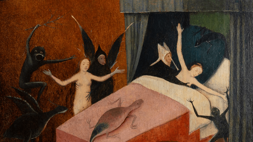 Partiendo del diálogo entre la pintura del siglo XV y las posibilidades artísticas del siglo XXI, esta exposición de pequeño formato presenta dos tablas, El cielo y El infierno, realizadas por un seguidor de El Bosco (c. 1450-1516). Las piezas, procedentes de un tríptico perdido dedicado al tema de El juicio final, se exhiben junto a una selección de obras contemporáneas de carácter surrealizante, metamórfico y fantástico influidas por el pintor neerlandés.