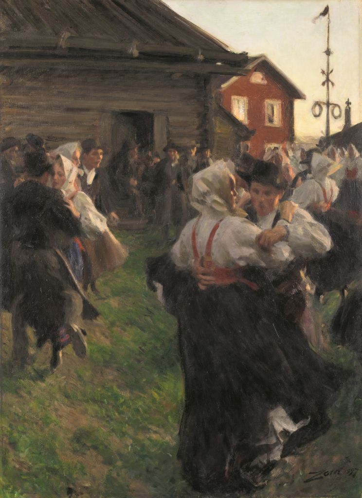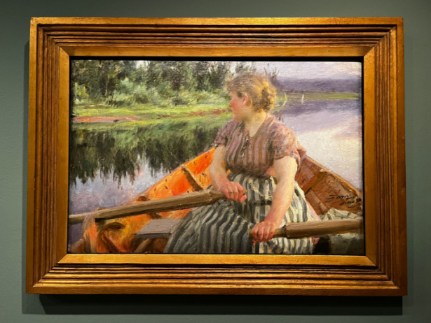 Y el recorrido finaliza en Suecia, donde Zorn se establece junto a su mujer en los últimos años de vida. Tras su regreso definitivo a Mora en 1896, Zorn no se limitó a representar la vida rural de Dalecarlia, sino que contribuyó activamente a consolidar su imagen como núcleo simbólico de la identidad sueca. A lo que tras su muerte continuó su mujer con su legado. Obras como Baile del solsticio de verano, convertida en una de sus imágenes más icónicas y reproducidas, trascienden la representación festiva para afirmarse como símbolo visual de la cultura sueca. Junto a esta exaltación colectiva, pinturas como Medianoche ofrecen una lectura más íntima y atmosférica del paisaje nórdico. La luz vuelve a ocupar el centro de la escena y, junto al tratamiento del agua y al reflejo de los árboles, deja entrever la esencia de ese verano escandinavo.