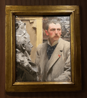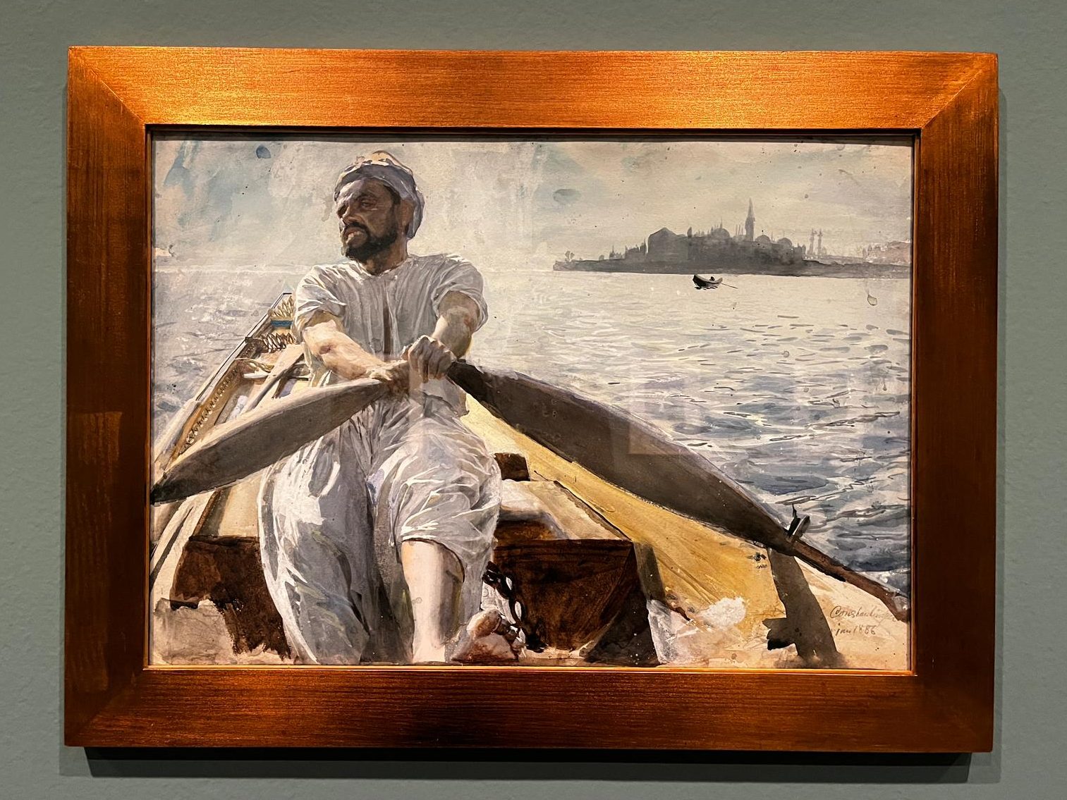El recorrido se abre con dos autorretratos que funcionan como carta de presentación del artista y como declaración de intenciones: antes de retratar al mundo, Zorn se sitúa a sí mismo en el centro del relato. Tras este umbral, la primera sala introduce sus inicios como retratista y su temprano dominio de la acuarela. De luto (1880), obra que atrajo la atención de la crítica y le proporcionó sus primeros encargos relevantes, marca el punto de partida de su proyección profesional. La independencia económica derivada de estos éxitos iniciales le permitió emprender sus primeros viajes a España y Argelia, decisivos tanto en la ampliación de su repertorio temático como en la consolidación de su estilo.