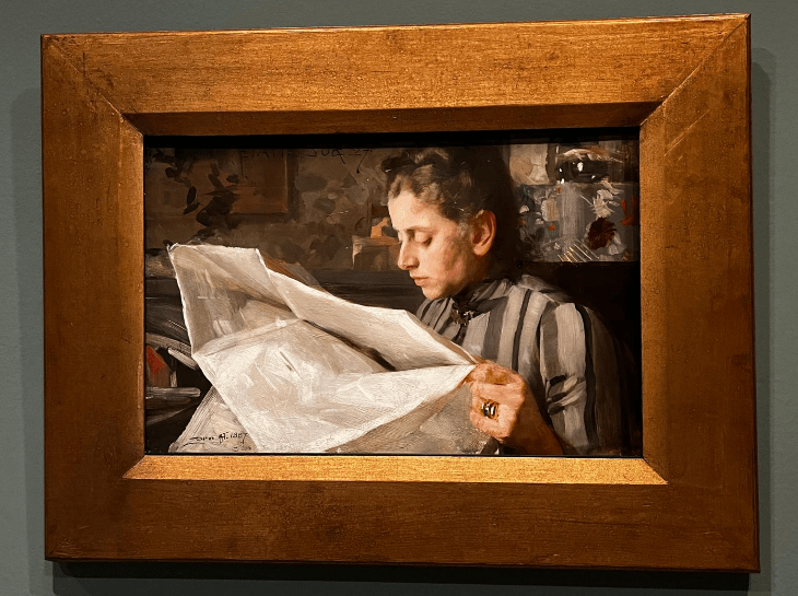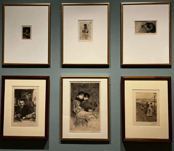 Entre los retratos internacionales y las escenas vinculadas a su Suecia natal, una sala pequeña pero clave reúne la producción gráfica de Zorn, compuesta por más de 290 aguafuertes realizados a lo largo de su vida y recogidos en varios catálogos monográficos. Lejos de ser un apartado menor dentro de su trayectoria, el grabado constituye uno de los núcleos más sólidos de su obra puesto que también se puede apreciar cómo empezaron muchos de sus retratos.
