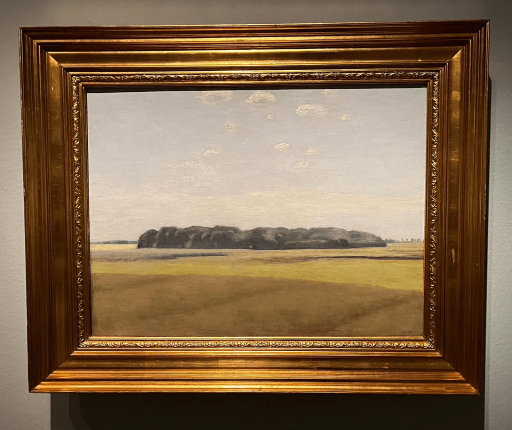 En sus paisajes naturales, el terreno llano y uniforme de Dinamarca aparece tratado con idéntica austeridad: composiciones de planos suaves y superpuestos, apenas interrumpidos por algunos árboles o construcciones.